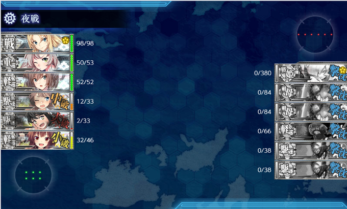 うっかり最後の任務の5-3 Kマス(戦艦×2の夜戦マス)でネルソンタッチ使うの忘れてたのでボスマスで使ったけど昼戦不発で旗艦残しちゃったら夜戦でタッチしてて笑ってしまった…。 クリスマス任務おわりました!おつかれさま~