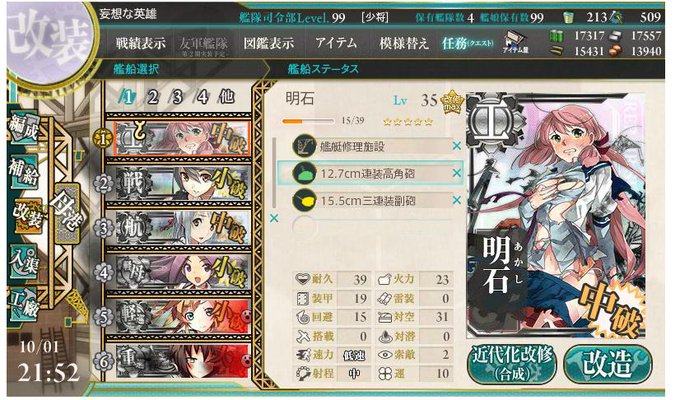 明石改へあっぷしましたー (疲労している艦娘の存在がヤバい…)