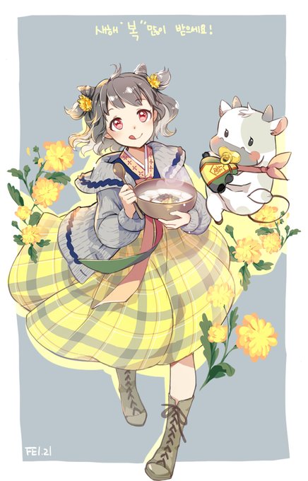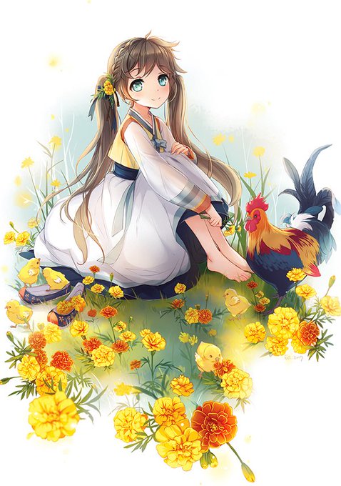작년에 연리한복에 참여한 그림. 메리골드 넘 좋음. 치킨도 물론 넘 좋고..한복도.....
