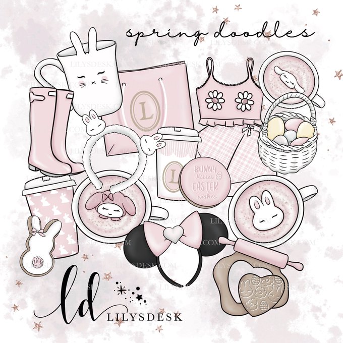 so happy with how these new spring doodles came out, they will be available as mini stickers and die cuts/sticker flakes on my shop at re-opening 🎀🐇