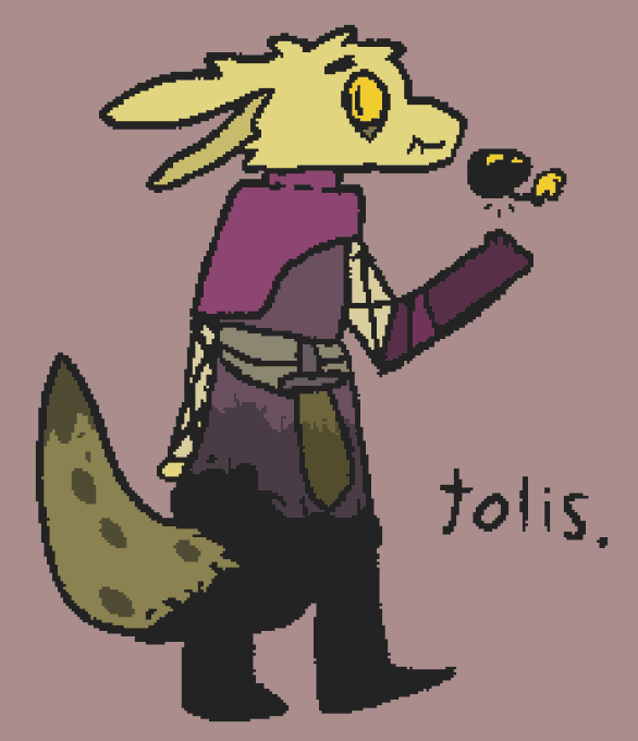 a character i made up a few days ago, he's this weird fluffy lizard-like person thing who happens to be incredibly mischievous