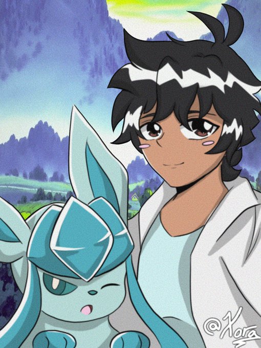 Art trade to @bladewielder05 with his trainer and his Pokémon.