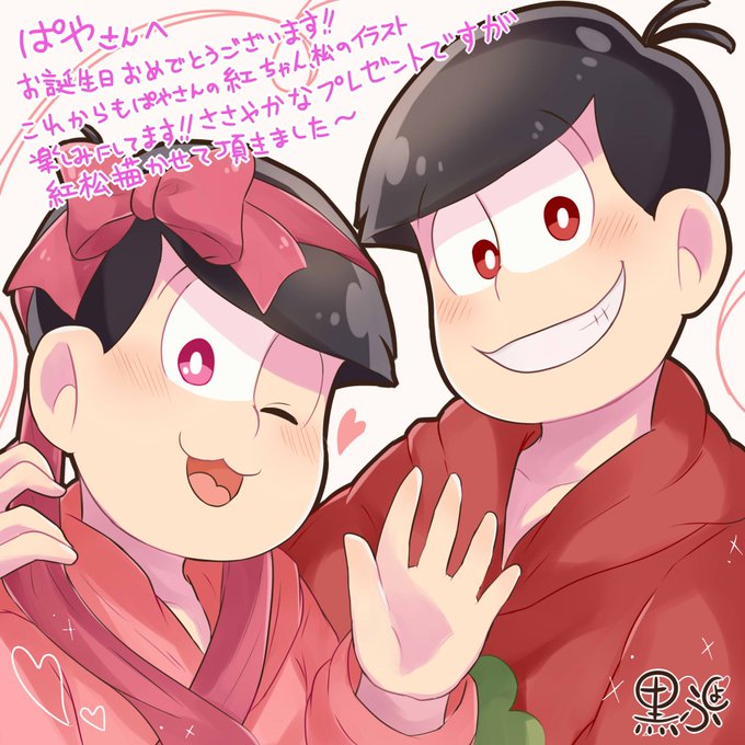 @88_paya ぱやさんお誕生日おめでとうございます~!! いつも紅松ちゃん見て癒されてます(´ω`)ささやかなものですが紅松のイラストで祝いさせて頂きます><これからもよろしくお願いします!٩( 'ω' )و