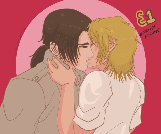 Finally, after a lot happened - Eruriweek & my beloved pet getting sick but now Gato is getting better little by little 🥺 -, I'm getting back to update #prompt_kissing. This time E1, BlancaxAsh, from #BANANAFISH, for @AsteriaBridget . Sorry by being late!!! 🥺🥺 #AshLynx #Blanca