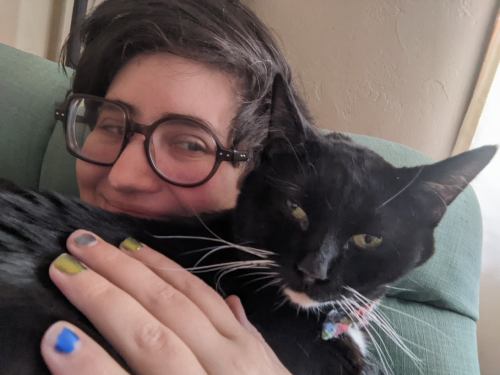 This was originally going to be way more cyberpunk looking but then she changed into looking more like a mail carrier. I'm fine with this, I bet she delivers pressed flowers to kind residents.