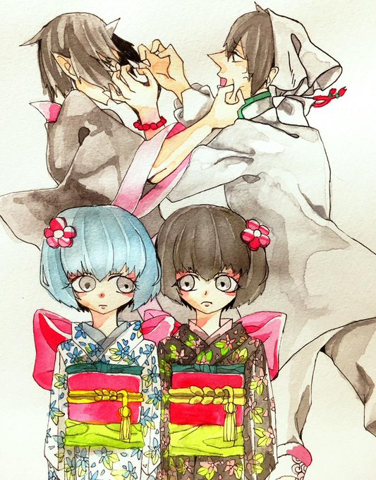 昨日のやつ塗り終わった! 座敷童子ちゃんが描き慣れてないから変なところあるかも…