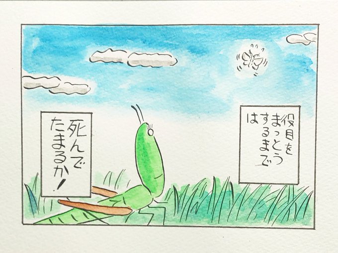 今日のバッタ 177 #漫画 #まんが #バッタ #カマキリ #オオカマキリ #ダンゴムシ #震える #虫 #虫好き 走れ!ダンゴ先輩