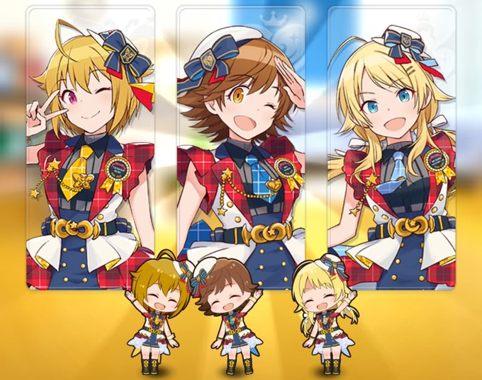 黄色い子ユニット。真面目なユニット名つけたら禁止ワードが含まれていますって言われたからユニット名は『ぱいぱいズ』になったよ #ポップリンクス