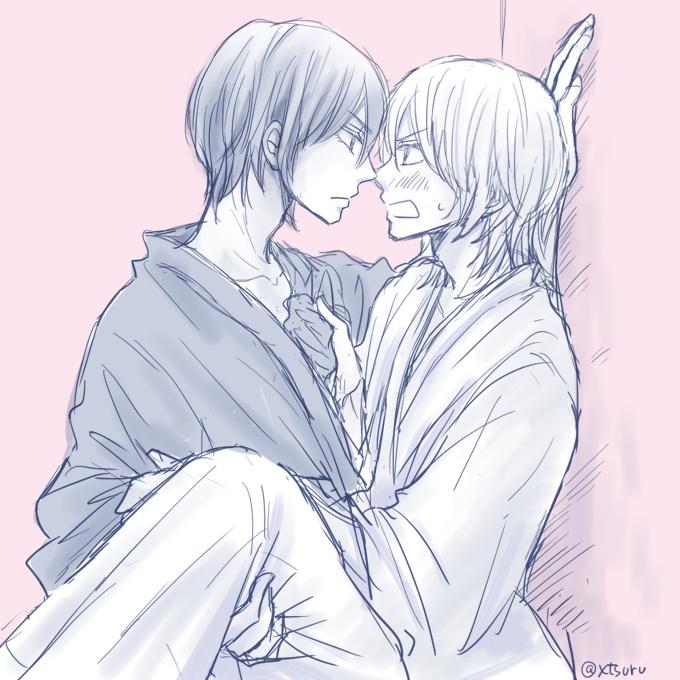 #鶴丸受け版深夜のお絵描き60分一本勝負 お題【壁ドン】みかつる 。ケンカした…というか三日月怒らせた