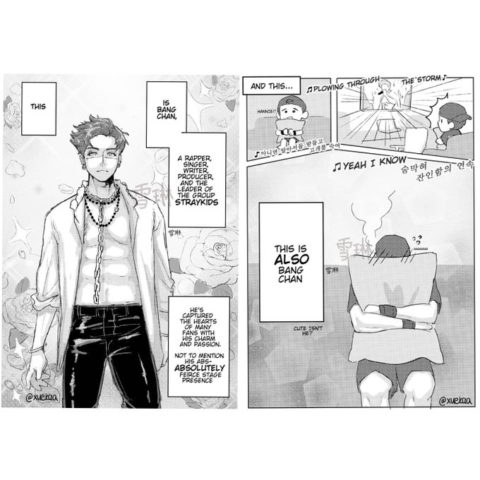@ScarletBlossom_ Hello! You can call me xue / rynn, I like to make fanmerch, AUs, and very occasionally comics! Especially for skz but i also try to draw other groups/anime :] i love drawing food and jeongin *_*)9 💌🦊