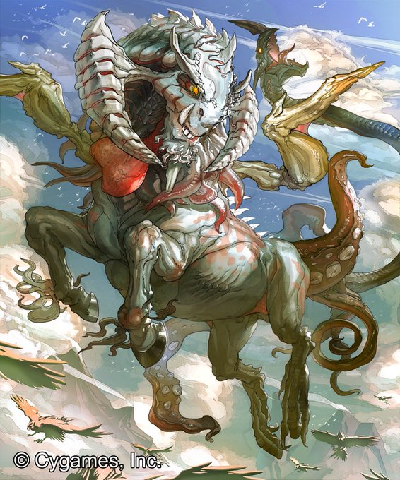 告知・株式会社Cygames様の神撃のバハムートにて、タコとか手羽先で美味しい美味しいイベントボス ボジョレーキマイラ を描かせていただきました。どうぞよろしくお願いします。