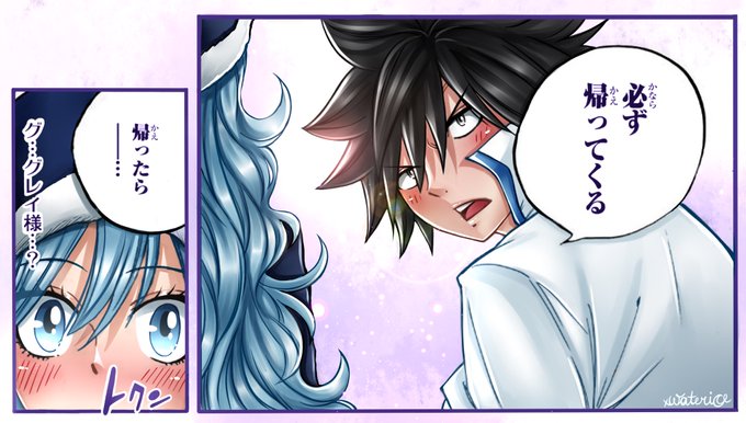 @atsuwo521 9巻のおまけは素晴らしかったです!このコマの塗り絵をしました。気に入っていただけましたらと思います😊グレイはジュビアのことが大好きで、このことをできる限り早く彼女に伝えたいことがわかりましたので、このシーンは意味深長でした!読者にはグレイが告白するシーンが待ち遠しいです