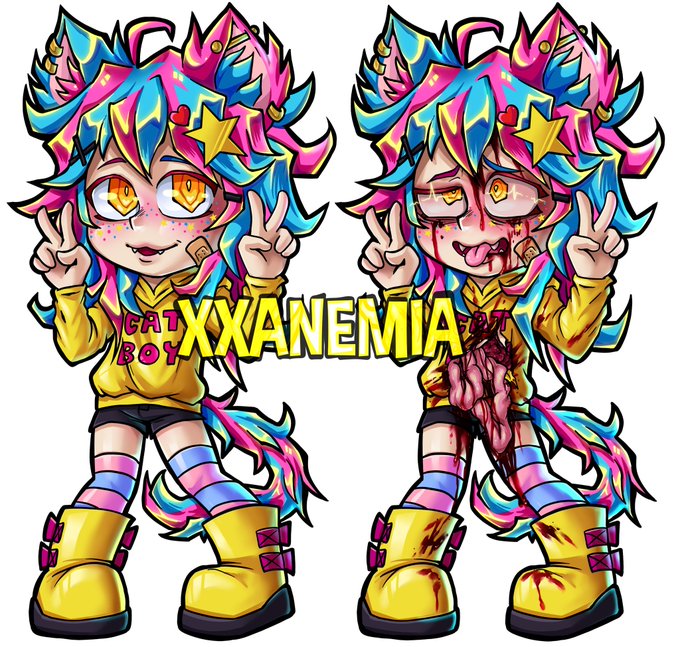 I'm Anemia and I draw monster girls, catboys, demons, and allll the colours!! I sell my stuff at Aussie conventions, and stream art on twitch 💖