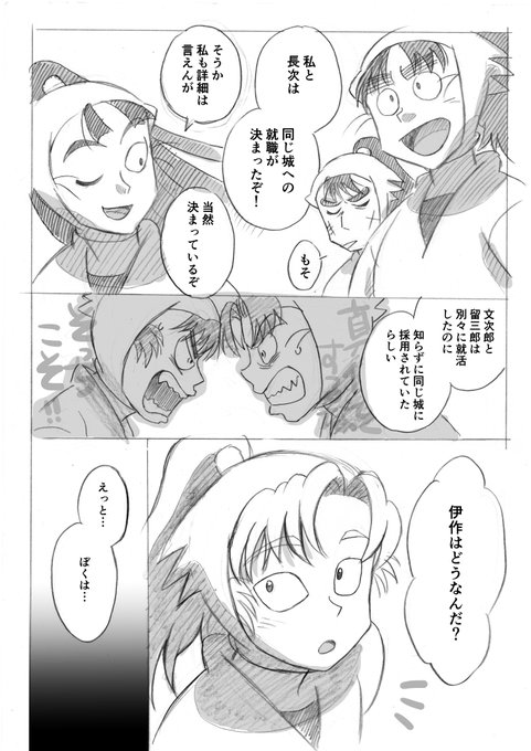 最初に鉛筆画だけ上げてるときは誰にも気付いてもらえなかったけど、久々知のとこにくる(迷子)までに伊作も不運で結構ちっちゃいケガをしている設定だったりw https://t.co/FKzimphJvj