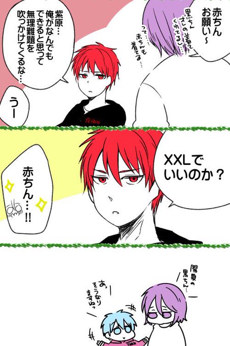 ( ㅎ.ㅎ)「寒くて紫原君をついつい風よけにしちゃう季節になってきました」 (ㅎノ-ㅎ)「やめてよねー」