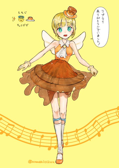 絵文字キャラデザ描きました~!七海さん(@7310ko)リプありがとうございました💛 #リプきた3つの絵文字でキャラデザする
