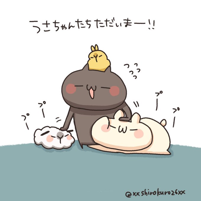 今日もめちゃめちゃ暑いのでみんな気をつけてーーー!!!💦☀️ #うさぎのしろとねこのくろ