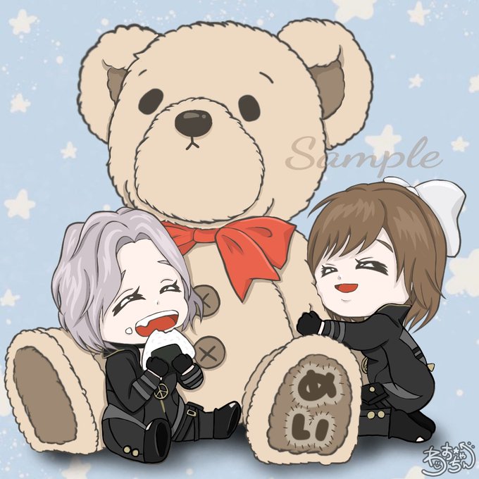 ☕ペア画完成品☕ #アイコン依頼 ✿荒野キャラ ・美味しそうに🍙たべる ・🐻に抱きつく ✿ビック🐻(🎀) ✿背景色違い(★) それぞれの名前を🐻名札に との事でしたが見えにくいのもあり 足裏👣にと提案させて頂きました🥺 #わおの絵日記 #イラスト #イラスト依頼 #アイコン有償依頼 #アイコン