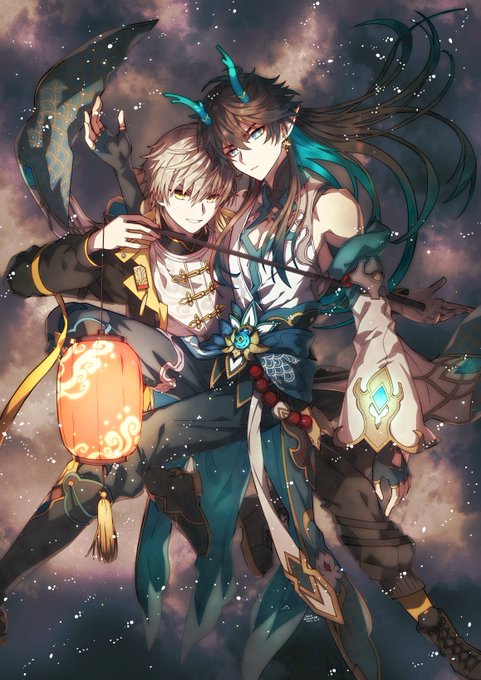 ワンライまとめ用の表紙進捗。ラフ……丹恒先生の腕力筋力を信じて、こっちの構図で進めまする✍️😌✨
