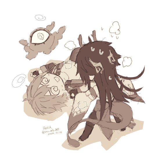遅刻参加失礼します! 穹丹ワンドロお題「ツーショット/ホラー」【フライング+1h(+6h)】になりまする……!😌✨ 穹さんが浮煙(歳陽)に憑りつかれてた時の妄想。丹恒先生と鉢合わせして煽って来た……という感じで!! ホラーなので少し悪いことがしてみたくなり申した!🤣✨✨ #1Caeheng #Caeheng