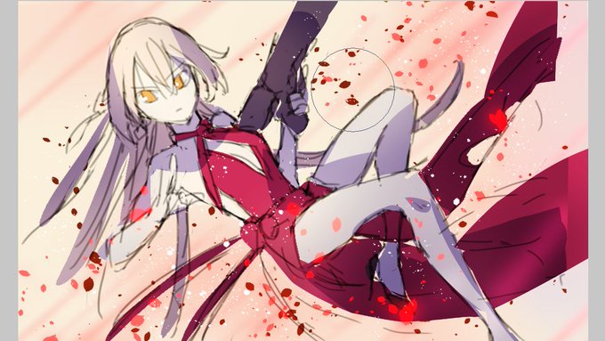 Skeb進捗。画面に対する配置が決まりましたので、一枚に集中して資料を見ながらひたすらに、形を整えていってまする。地味だけど楽しい作業……。