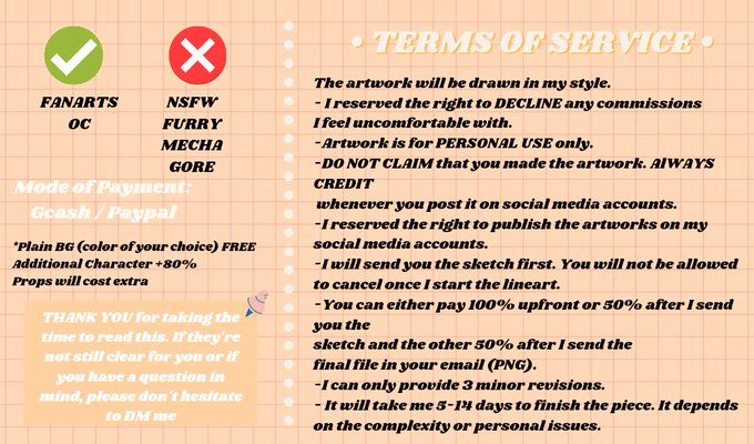 I updated the prices of my comm sheet so pls if anyone is interested kindly DM me for more infos📩