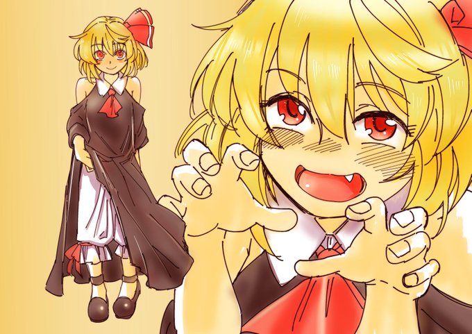 #深夜の真剣お絵描き60分一本勝負 暑いのでルーミアちゃんにオフショルダー着せてみた。 涼しげ~