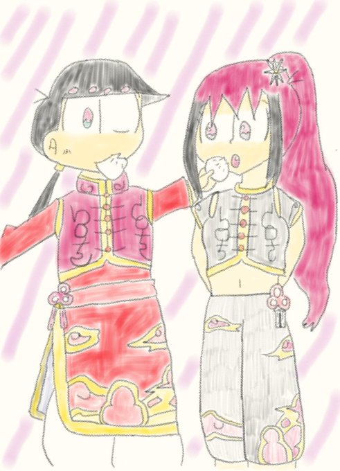 #チャイナ悪魔の双子 #デビ松版絶対に被ってはいけない悪魔の双子 デビ!遅くなってごめんね!参加しました!個人的にチャイナ服を描くの好きだから↑のような感じになってます!あとは、... https://t.co/sT7dK0yoKp