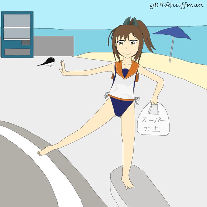 #艦これ版真剣お絵描き60分一本勝負_20170801 #艦これ版深夜の真剣お絵描き60分一本勝負 #江風 江風「提督~次はあの出店行こうぜ!」