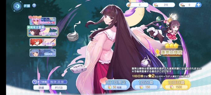 10連で輝夜様引きました!ひたすら祈ったら、なんかきた、、、、。 #東方アルカ #東方好きと繋がりたい