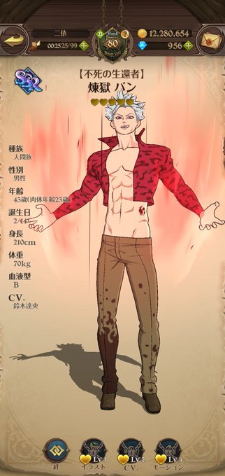 ダイヤ180個使いました(成果SSR4体) ま、バンがきたからいっか…これで煉獄バン必殺技2です