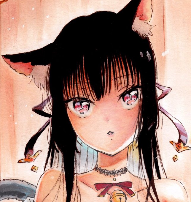兄弟に、ペン画の時の黒猫ちゃんが可愛くないって言われて、 内心、確かに… と思って新しく描きました。