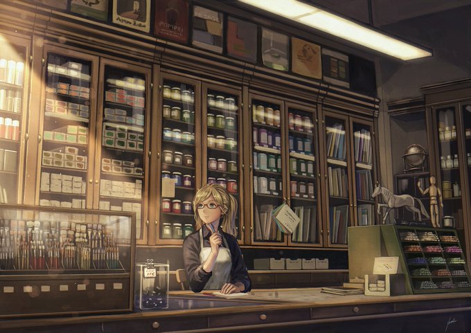南潔さん著『黄昏古書店の家政婦さん~春夏秋冬下町恋話~』装画 デザインが入る前のイラスト全体はこちらになります。 雰囲気重視の前巻と比較してキャラクターの感情に意識を向けていただけるような描写を心がけています。