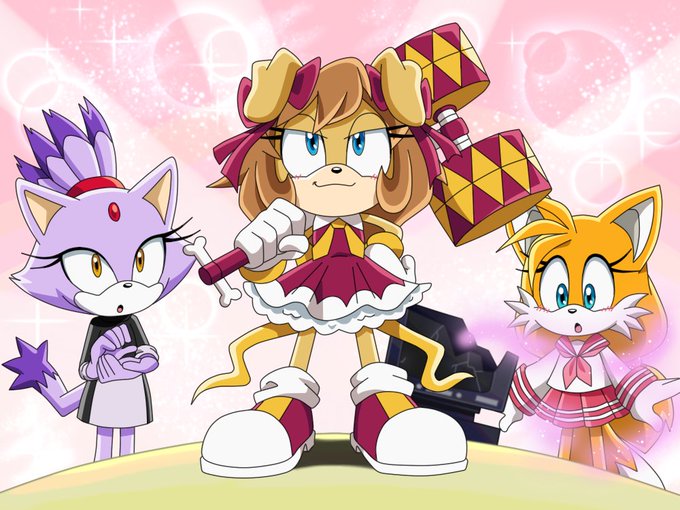 I'm here with new fake screenshots😏 This time I just created what I wanted to draw for a long time (though not all XD). As a basis, I took skins from the Sonic Forces: Speed Battle and I also drew Tikal with chaos and Boom girls, as I really wanted to do draw them X3
