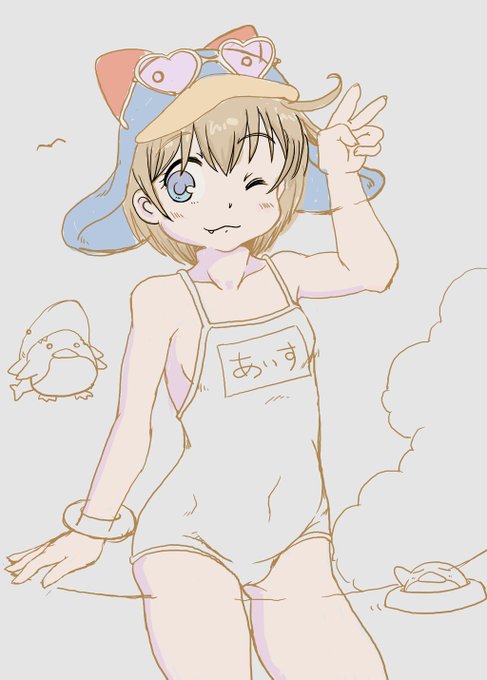 金・土ひさしぶりの連休でした! 絵が完成できてよかった・・・(∩´ω`∩) 昼間アップしたえここちゃんの白水着。