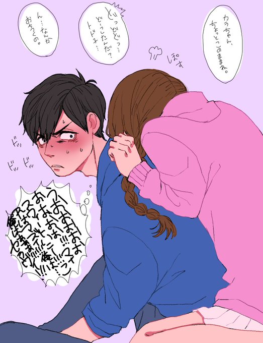 体がかたくて最近柔軟体操を一松ちゃんに手伝ってもらってるカラ松パパ。 一松ちゃんは体めちゃくちゃやわらかい。