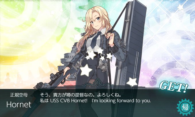 E3-3突破。ギミック解除なしにクリアできました。北上投入せずにクリアできたのが大きかったかな。ながむつ温存でコロちゃんでいけました。アイオワとホーネットも拾えました。 #艦これ