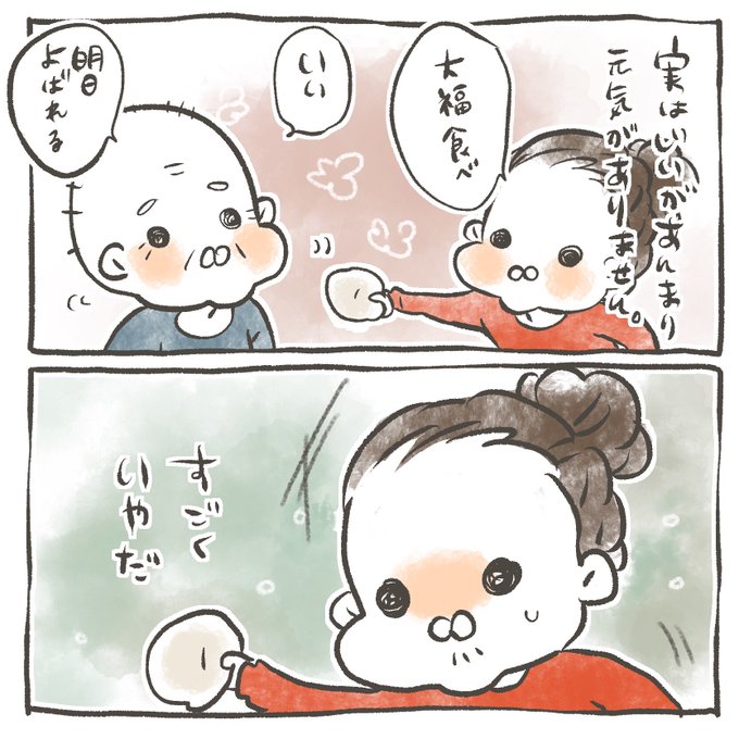 そこまでするならもう手でええがな! って突っ込みました。 ばあかわいい。 #じじばばと孫