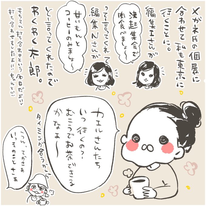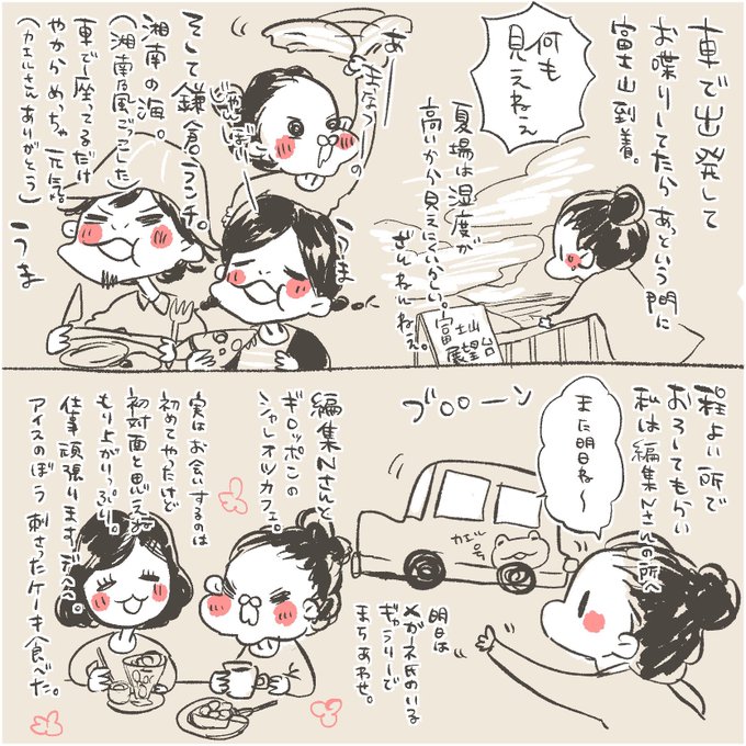 お盆に鹿児島に帰って戻ってすぐに東京へ! 怒涛の2週間が終わった。あとは描くだけ。 カエルさんたちはいつもお世話になってるカフェのご夫婦です。 東京にいってきたよレポ①