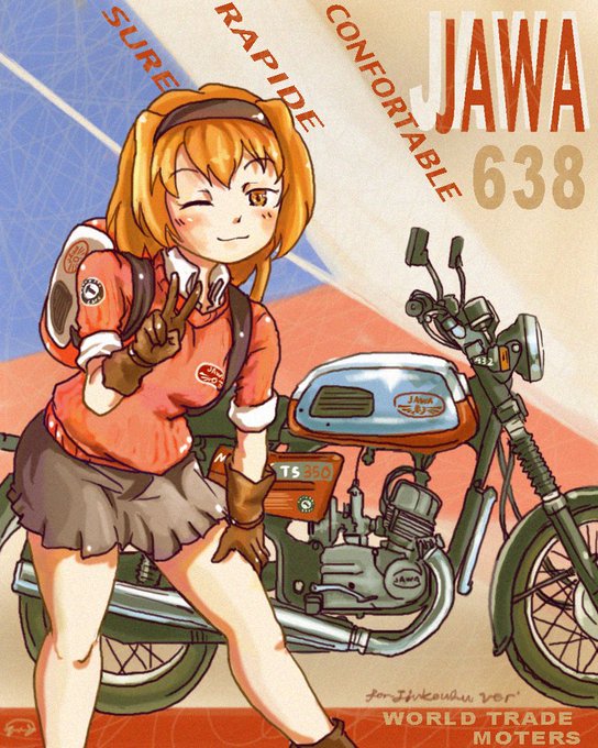前から描きたかった人工空さん@jinkouku とこのJAWA638ちゃん #バイク擬人化