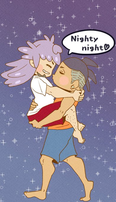 おやすみ絵。今日もキダ 描く度に頭身上がるから、もうちっちゃくもなんともない! あと、ダくんノーパンツです。おやすみ!