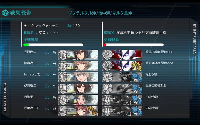 Nelson旗艦が多いですが、私は榛名旗艦で攻略したかったので。