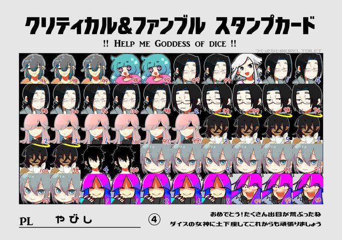 通常立ち絵とクリファン差分 クリティカルのレインボーゲボは出ませんでした ファンブルだけ出して帰ってきた そういえば両生還しました