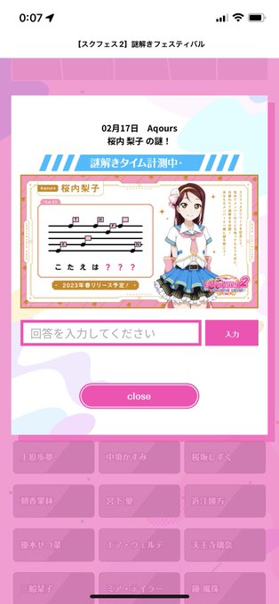 今日のスクフェス謎解き、めちゃくちゃ 難しくてずっと沼ってました😌💦 仕事中に見るんじゃなかった… (イメージは梨子ちゃんでお届けします)