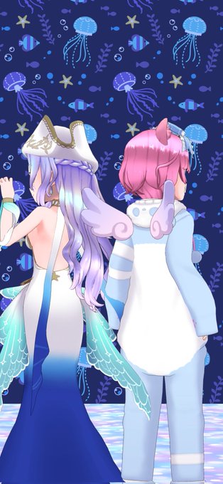 イロくん、イロネちゃんと チェキ〜(❁´ω`❁) ちなみに、ピンク頭は 2人ともやえだぞ!
