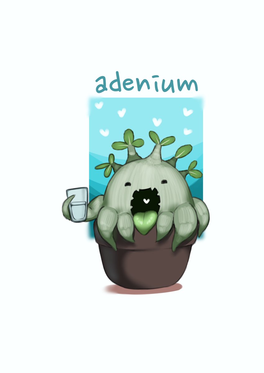 そういえばいつも描いてるこの子 怪獣オベスムスって名前です よろしくお願いします🪴✨ #イラスト #アデニウム #怪獣オベスムス