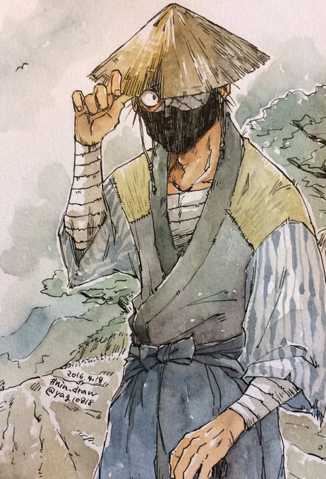 街はずれの街道に、その異様な男はいた。若いのか年寄なのかも見当付かず、包帯と杖は変装の目眩しのようにも見へた。その異様な男は雑渡昆奈門と名乗った。 #nin_draw