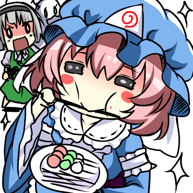 #深夜の真剣お絵描き60分一本勝負 ※東方版 幽々子様!?またつまみ食いですかあああ!! 30分で描いたもの。