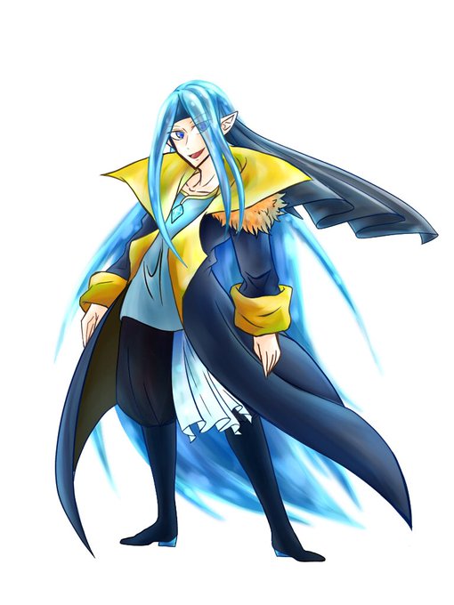 天界の長、天使長シェルズナジエ(水色)と仕えの天使官アンジェシカ(黒髪)とラクノム(糸目)