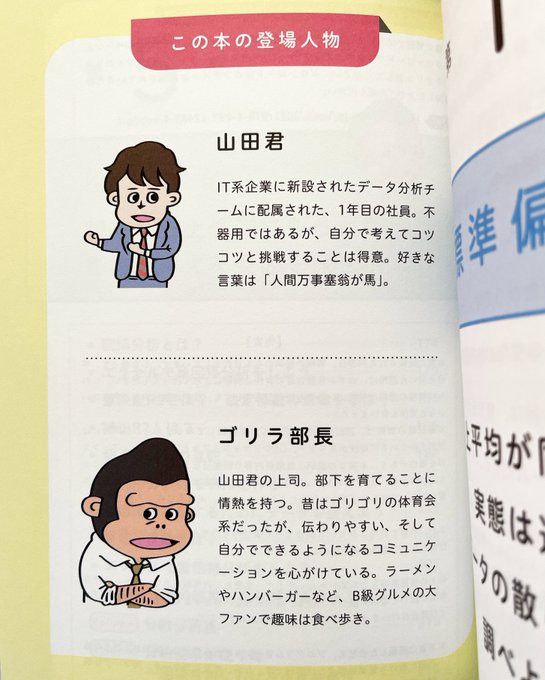 データ分析チームに配属された主人公がゴリラ部長から統計を基礎から教わるストーリーで、言葉の定義も充実。統計学びたい方はぜひ。